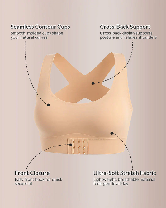 Front Closure Cross-Back Wireless Posture Bra
