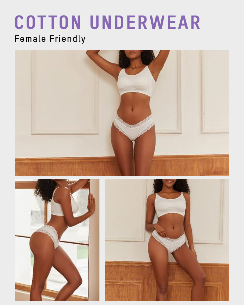 Ribbed Cotton Lace Mid-Rise Panty(9 pack)