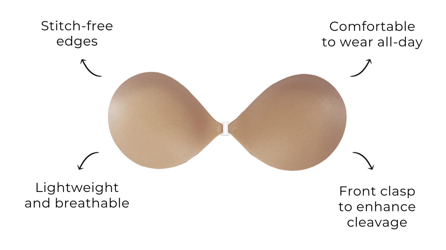How to Remove: To remove your sticky bra, unclasp and gently peel off one cup at a time, starting from the top outer edge. Reapply protective films onto the sticky bra and store back into the HEYSHAPELY gift box, away from direct sunlight.