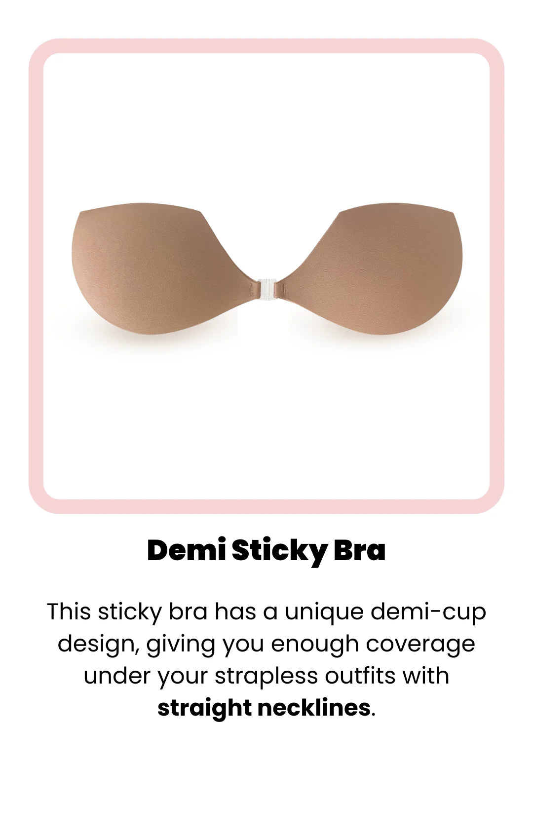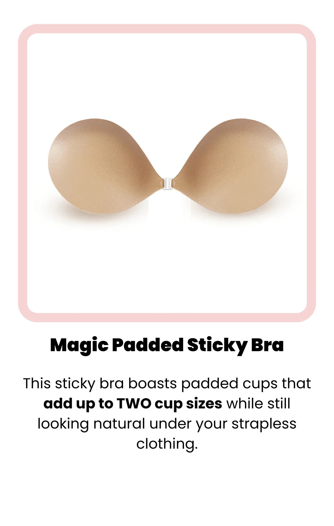 This backless, strapless sticky bra is a must-have for this summer! Say goodbye to wires, straps, and nipple slips and say hello to amazing coverage and comfort.