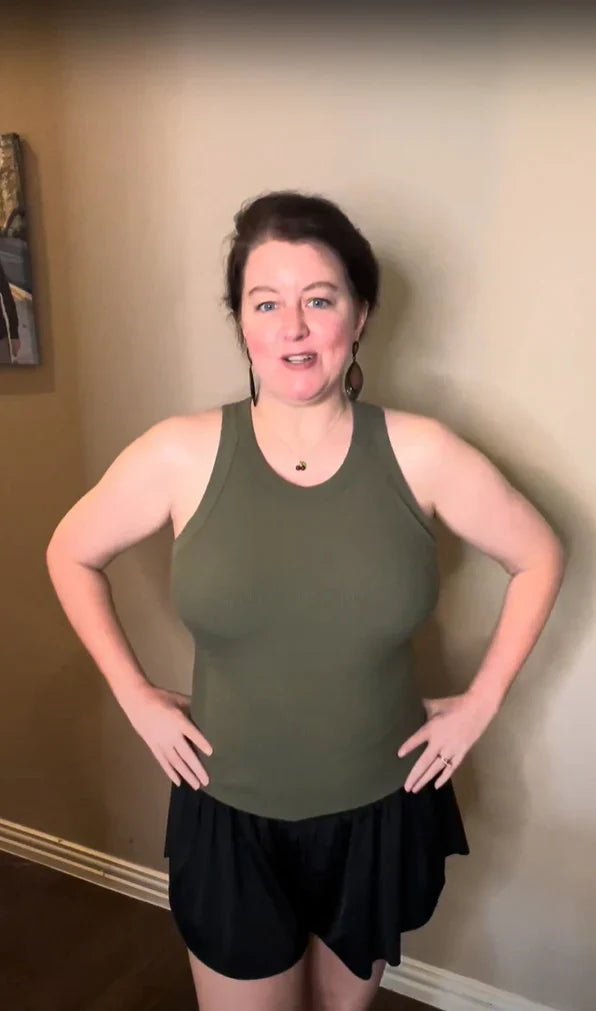 Our tank top's body-hugging ribbed knit fabric smooths out any unwanted bulges, giving you a sleek, streamlined silhouette. Say goodbye to underarm and back rolls! With its full back design, you’ll get all the coverage and support you need to feel comfortable and confident all day long.